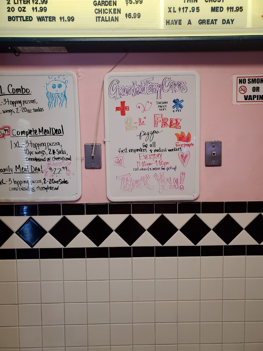 Overall, Grandma Tony’s Pizza provides a well-rounded menu that combines classic comfort food with a few unique options. The variety of pizza, salads, sides, and drinks makes it an excellent choice for any occasion, whether you're grabbing a quick bite or enjoying a leisurely meal with friends or family.